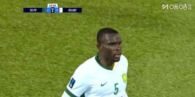 第53分钟,国安利用前场右侧角球机会,恩加德乌将功补过,头球攻门被阻后机敏的将球扫进大埔球门,帮助国安将比分扳平。