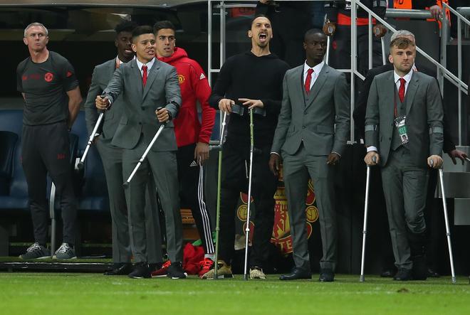 2017年5月24日,欧联杯决赛,穆里尼奥率领曼联2-0战胜阿贾克斯夺得冠军。本场比赛,曼联队的伊布、卢克-肖、罗霍、拜利等球员均拄着拐杖参与颁奖,“拐杖联”也代表着当时那支曼联的精神与信念。