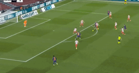 第61分钟,巴埃纳无对抗受伤离场,阿尔马达披挂上阵。4分钟之后,巴萨踢出默契配合,莱万脚后跟做球,奥尔莫跟上抽射破门,巴萨实现反超,2-1!