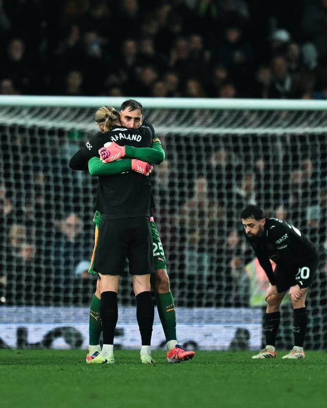 对富勒姆赛前,瓜迪奥拉曾表示唐纳鲁马是成年人,无需私下交代他注意黄牌问题,但如今单场丢4球,曼城主帅是不是也该专门提点一番?唐纳鲁马本人则有点逃过一劫的感觉,赛后他于社交媒体放出一张自己拥抱哈兰德的照片,并附文:“你们跟我说过英超很疯狂,是吧!”还配了个尬笑流汗的表情。仿佛在说:还好有哈兰德!不然我就完了!