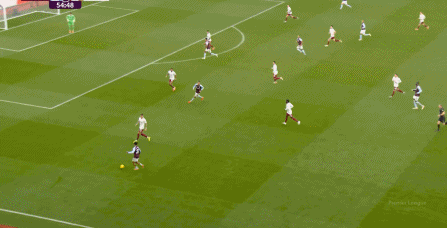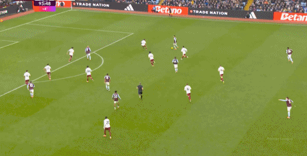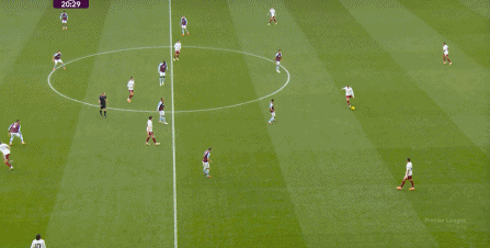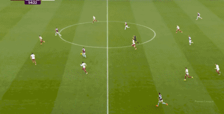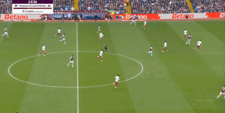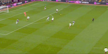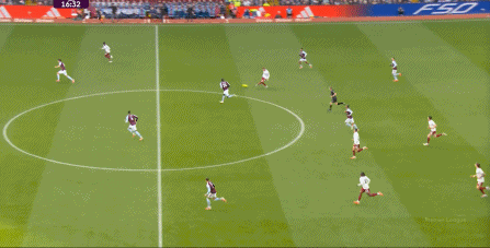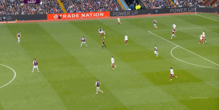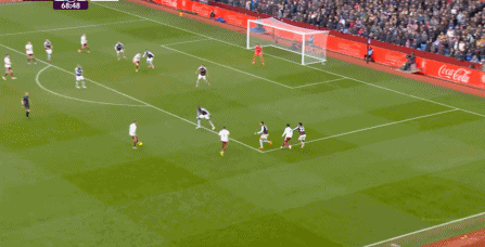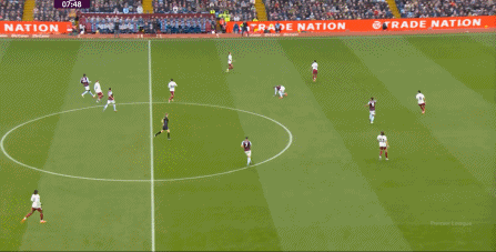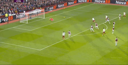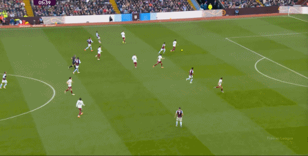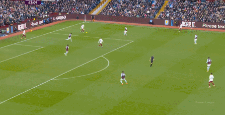 另外,阿斯顿维拉通过长传球,也能绕过逼抢和中场,直接从前场打出攻势: