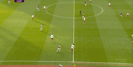 严格来说,这一球是最为可惜的,因为阿斯顿维拉此前专注于打阿森纳的中卫和身后空间,这里形成的压力就很大了,但丢球出现在埃泽的防区。